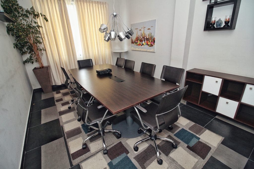 Salón para 45 personas con proyector, aire acondicionado, alfombrada.